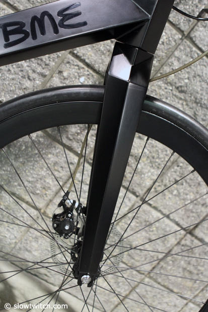 In the exhibit hall of the 2014 Handmade Bicycle Show in Charlotte, NC we noticed the sharp and distinctive edges of the BME Design Nighthawk and we liked what we saw. The bike was first shown in 2012 at a bike show in Berlin, Germany.