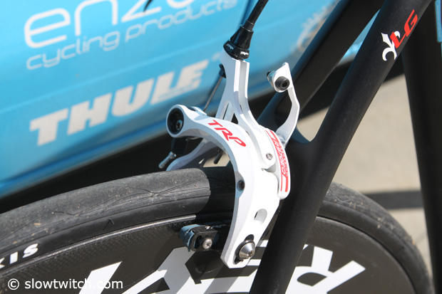 TRP brakes front and back with the clever number plate holder in place.