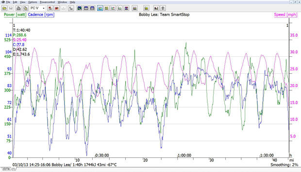 The SRM file of Bobby Lea in Blythewood during the 1:40 race.