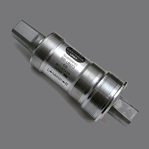 What stuck out of the bottom bracket was a "spindle", the ends of which were square, and tapered. Adjacent is a pic of what an old square taper BB looks like. We threaded this into the BB shell that was the focal point of the bike: cranks attached to it, and the down tube, seat tube and chain stays emanated from it. Keeping this area stiff and strong was paramount then and it is today.