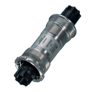 The first significant deviation from the square hole standard was Shimano’s Octalink system, pictured below, that featured a BB spindle with splines in place of a square taper, and these splines fit inside cranks designed to accept them.
