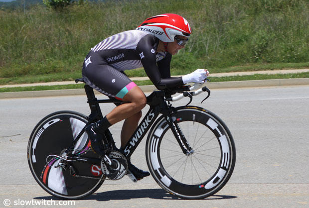 Carmen Small of Team Specialized-Lululemon grabbed the US Pro Cycling TT Championships title aboard her Specialized S-Works Shiv TT and we took a closer look at her race bike. This year's event was held in Chattanooga, Tennessee and the TT took place outside the relatively new Volkswagen plant.