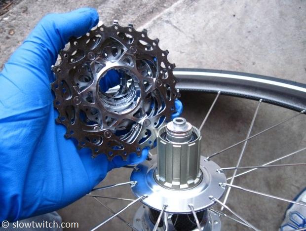 Great in theory, not in practice. Why? There are two reasons. First, this method has a tendency to remove about 25% of the grime, and spread the other 75% around (making the cassette look dirtier than when you started). Second, and perhaps more importantly, due to the design of modern cartridge bearing hubs, you are likely reducing your bearing life considerably with this wash-and-rinse routine. I’ve yet to find a cartridge bearing freehub (the part your cassette is mounted to) that lasts as long as one with loose ball bearings.