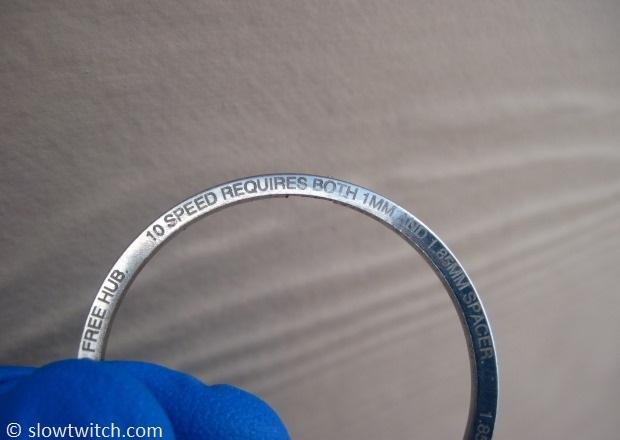 First and foremost, the original 10-speed spacer has two unofficial specs – 1.0mm and 0.9mm. These are used interchangeably. I have a bunch of these from different manufacturers. Some measure 0.9, some measure 1.0, and some measure different things entirely.