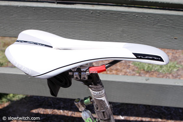 The white Shimano Pro Turnix saddle still looks pristine.