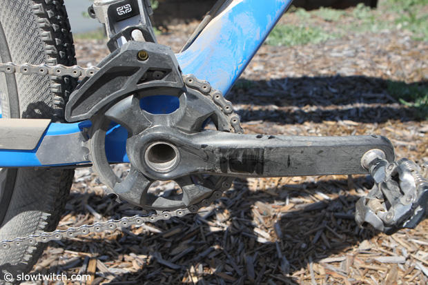 Pendrel has a singular 32 tooth ring up front on 170mm cranks with a guide to keep the chain on the ring.