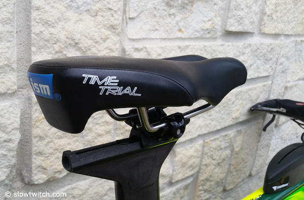 I just think in a lot of cases the ISMs aren’t move back at all on the rails when a saddle change is made (from standard to split-nose), and this places the rider’s hips several centimeters in front of where they were prior to the saddle change. This fundamentally changes the rider’s position. Here is Lionel Sanders’ bike, just overviewed on Slowtwitch. That’s a pretty steep placement of an ISM.
