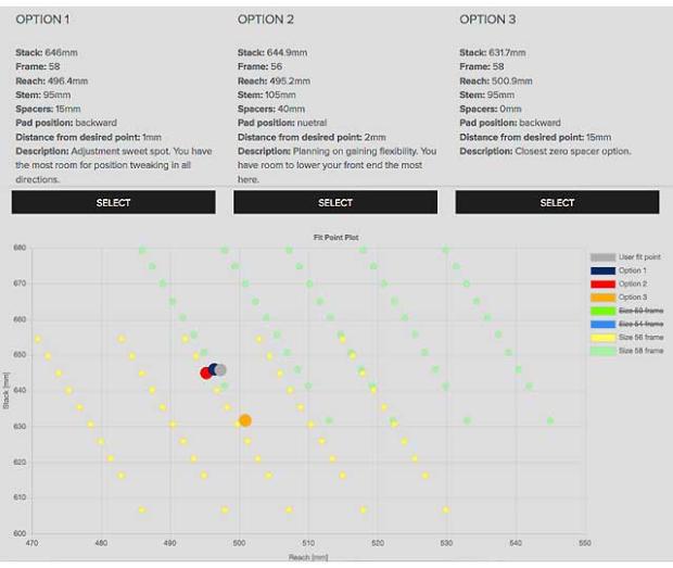 Those who patronize direct sellers of bikes (Canyon, Premier, Diamondback) may never experience the in-person solutions to which I allude. What Diamondback wanted was an online tool for folks who won’t rely on the in-person experience. I’m going to describe here the math I proposed for that company. It’s been deployed (with considerable coding skill) on the Andean Custom Studio, which is the cool configurator Diamondback uses to “build” your Andean.