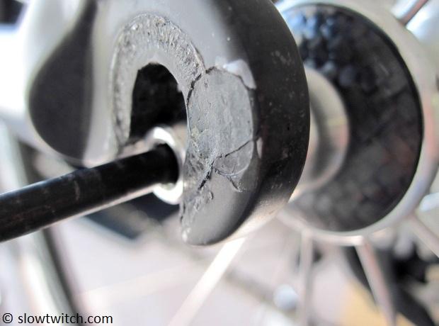 While that may appear to be overkill, one of my personal bikes – a carbon road frame with carbon dropouts – showed up one day with a cracked left dropout (see photo below). It sure would have been nice to bolt a new one on… but I had to replace the entire frame.