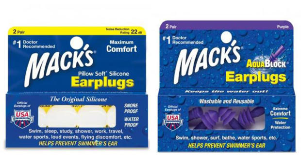 Most earplugs made are dual use: for swim and for noise reduction. All Mack's are dual-use as well as I can tell, though some of their models are optimized for one over the other, as you see from the description above of the model with the removable neck cord. Both kinds of Mack's earplugs – moldable and pre-molded flanged – are shown below in their packaging.