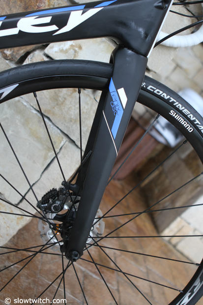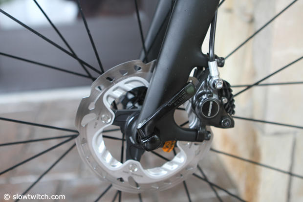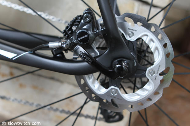From this perspective it is easy to see the asymmetric chainstays and the disc brake that is new for this model.