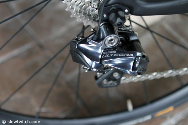 The Shimano Ultegra Di2 rear derailleur looks sharp.