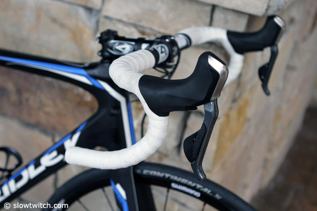 The bike will be offered in a variety of setups, but this one is the Ultegra Di2 edition. The cockpit is Ridley house brand 4ZA.