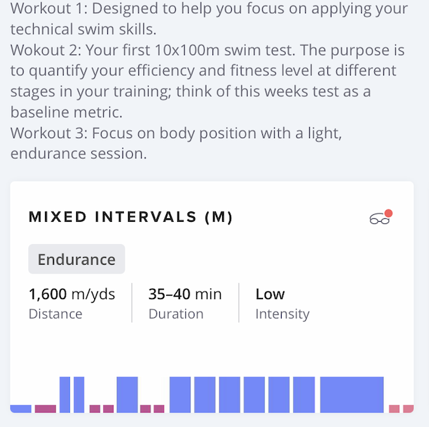 Having had advance access to the Plans feature, I agree with Mr. Eisenhardt’s quote above. The workouts themselves, like those in the deeper workout library, are well structured. But now they follow in a logical progression to build skills and fitness for swimmers who simply will never have a coach on deck with them providing feedback. The detail provided each week on what is being achieved in each workout is also commendable.