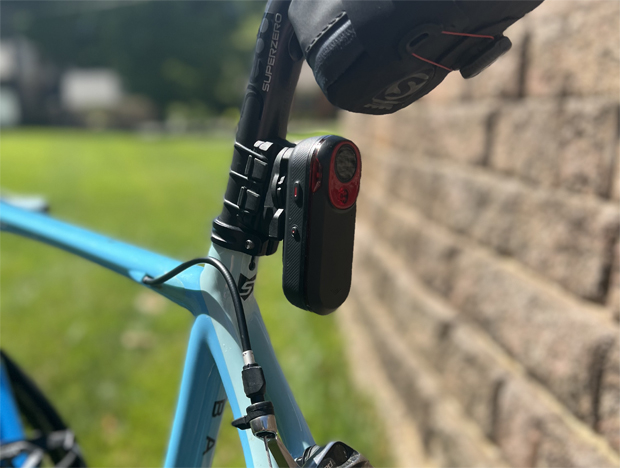 The radar also enhances the effectiveness of the light by changing the light’s behavior from solid on to flashing when it sees a car and then fast flashing as the car nears. The idea is that the flashing light gets a driver’s attention by changing so the driver is not lulled and is more aware of the cyclist. This has a side benefit in group rides. If one rider has a radar with a light, the other riders will see when the light changes from solid to flashing and also know a car is approaching before anyone looks back or yells.