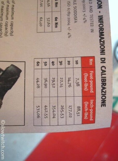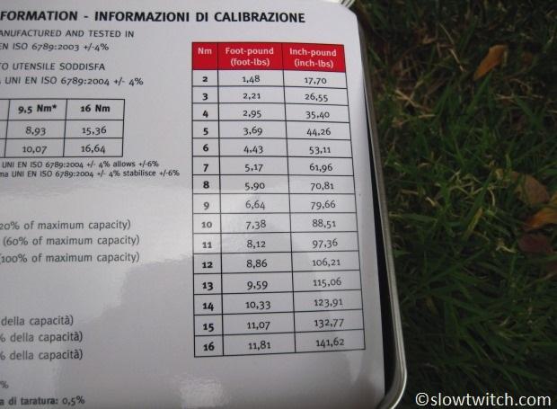 We’re told that the +/- 4% calibration is guaranteed for 5,000 uses (e.g. 5,000 ‘clicks’). Before using the wrench for the first time, you should also do a series of five clicks with no load – all you do is push the end of the wrench with your thumb. When you do need to recalibrate the wrench, we’re told that any calibration shop can do it, or you can send it back to their US distributor, Cantitoe Road.