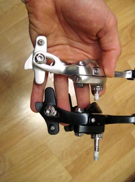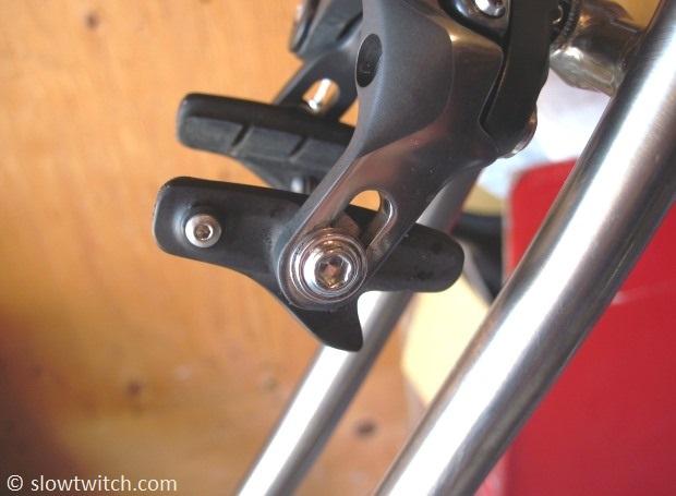 The photo below shows a Shimano R650 mid reach brake (left) compared to a standard 105 model (right).