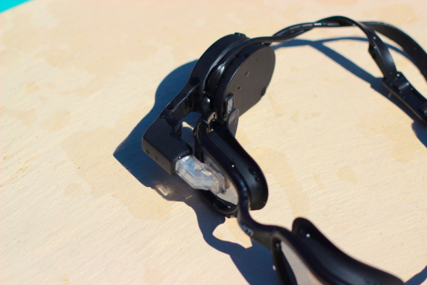 The Zwim HUD attaches to the right lens – only the right lens for now, which would be a bit of an issue for me as someone who is left-eye dominant. It has a built-in optical HR sensor that measures HR at the temple and works even in the water. I found the testing – albeit on dry land – to show that it was quick and accurate. The unit charges via a waterproof micro-USB port, which is also how you control the device to set up the various display screens. There's no wireless communication (for now), though I suspect a BLE chip would be a logical addition that would not add much to the size.