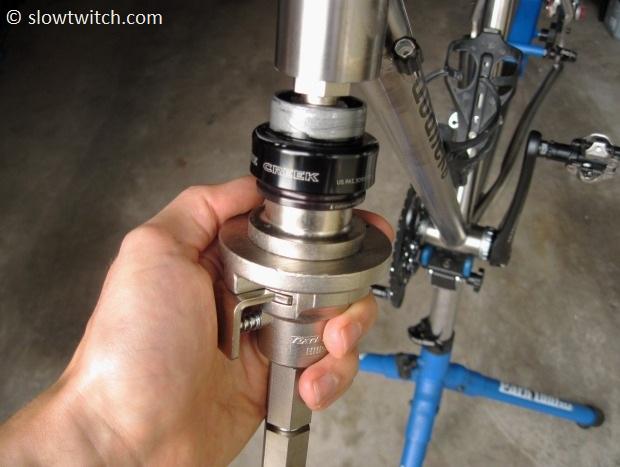 Next, the press goes in the top of the head tube.