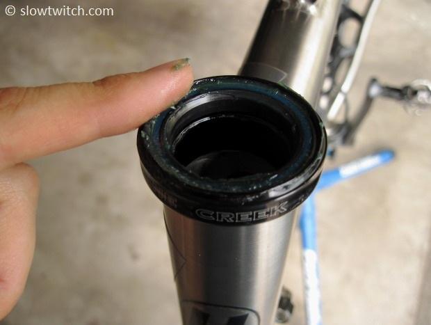 I did apply anti-seize to the headset cups when I first installed them, but that was well over a year ago. My rule of thumb is to remove each of these parts, wipe them down, apply new anti-seize, and re-install them at least every two years on a ti frame. On aluminum or carbon frames (which use standard grease or carbon paste), you can probably stretch it another year if you really want, but it is still good practice to periodically remove, clean, grease, and reinstall your headsets, seatposts, and bottom brackets. If you sweat a lot or live in a humid/coastal region, you will likely have to perform this service at more frequent intervals.