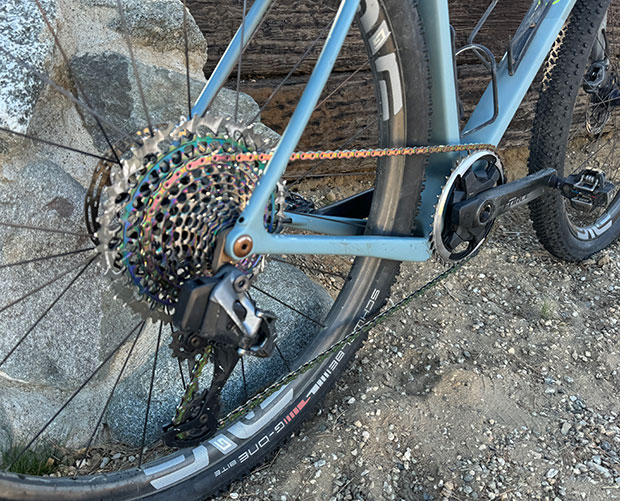 Then came the groupset and after having ridden a lot of 1x and 2x, what I settled on for my purpose is what SRAM calls its Mullet Config, which is MTB behind the cranks (rear derailleur, chain, cassette) and road from the crank forward (crank, BB, shifters, brakes). It’s all hydraulic and all electronic. For me, RED is jewelry, Force is all-function no-bling. So, it was SRAM Eagle behind the BB and SRAM Force AXS on the road components. Yes, SRAM makes a fully integrated 1x AXS groupset, called XPLR, but I find that this is more a road or tri groupset, because Eagle gets me that 10-50 cassette and that’s killer if you’re riding up 20 percent pitches (which often occurs where I live) and I’m in my 42×50 whenever I’m riding anything steeper than 12%.