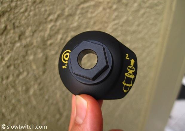 What gives? Due to the wider 135mm mountain bike rear hub spacing, the axle caps stick out further on either side (compared to the 130mm road hub). The bore in the plastic tool is not large enough to accommodate this. I spoke with CycleOps customer service, and they are aware of the issue. In lieu of using the tool, you can simply wrap a rag or piece of rubber inner tube around the plastic cap and use your hands. It isn’t quite as elegant as using the tool, but it worked just fine for me.