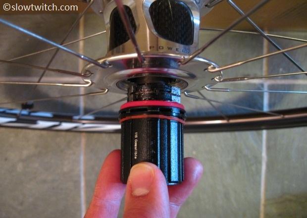 I’m taking this opportunity to install a Shimano 11-speed-compatible freehub on my hub. CycleOps now offers this as a spare part for all G2 and G3 hubs. It does not require any re-dishing of the wheel.