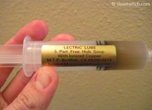 Next, you will need some grease. The nice thing about the 188 is that you can use almost any grease you desire. I’ve never had the pawls stick down from grease that was too thick. My go-to for freehubs is ‘Lectric Lube from Morningstar Tools (also known as Morningstar Freehub Soup). It’s a silicone-based lube with teeny-tiny bits of copper in it.
