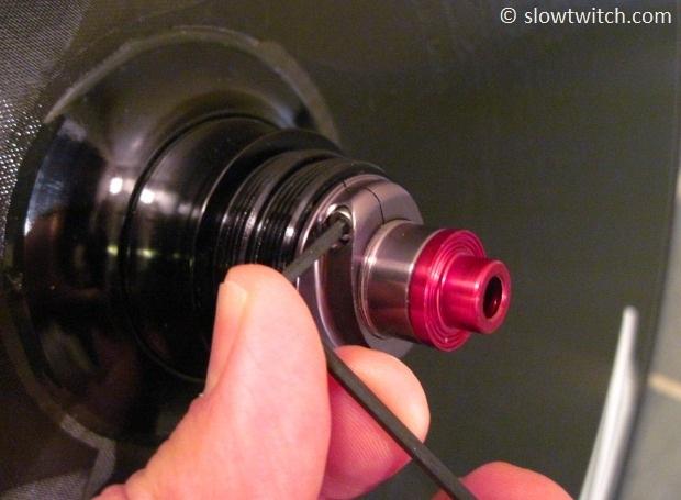 This is where the always-subjective step of bearing preload comes in. For this hub, thread the clinch nut down just until it stops. Then back it off about 1/8th of a turn and tighten the 2mm bolt.