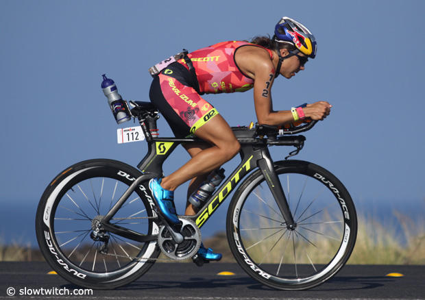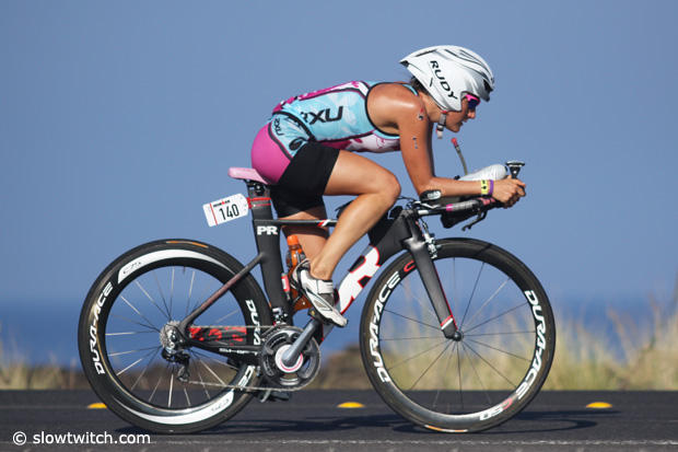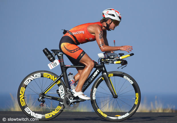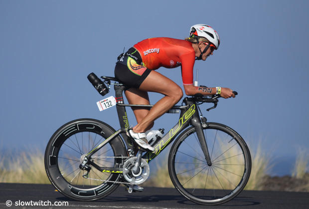 American Kelly Willamson started her day with a 59:54 swim and then rode 5:35:52.