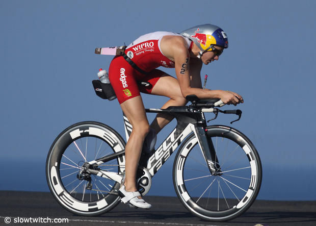 Jodie Swallow led the women out of the water and rode 4:58:48 but she ended up not finishing.