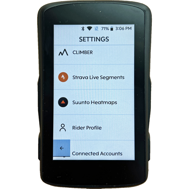 The first step is to update your Karoo firmware. This may happen automatically but be sure you have the latest before you continue. You will know, because your Karoo 2 will have a new “Suunto Heatmaps” selection on the Settings menu. (The setting does not do anything, just tells you it is there and how to use it.)