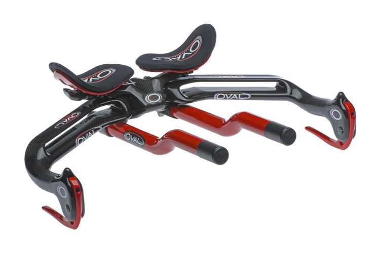 Oval fills out its line with the A901 (carbon) and A701 (alloy), both of which use Oval’s Laminar design, which basically means just a thin, aerodynamic base bar. The A901 is very similar to HED’s one piece aerobar, and this is the bar that Michellie Jones piloted to her Kona victory last year. For more information, visit Oval Concept’s website.