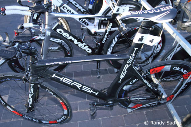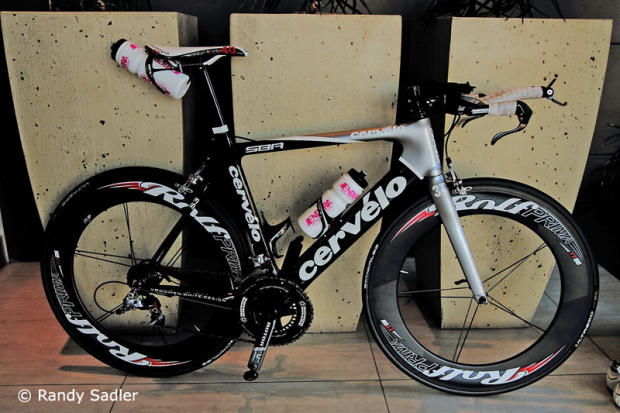 The Cervelo S3 of Jason Shortis is ready to be taken to the transition area.