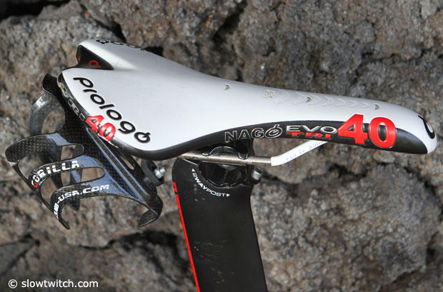 The saddle on his bike is a ProLogo Nago Evo Tri 40.