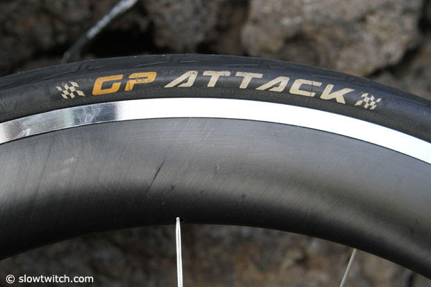 He still had a GP Attack tire up front, but both tires will be replaced with new Continental GP 4000 S tires for the race.