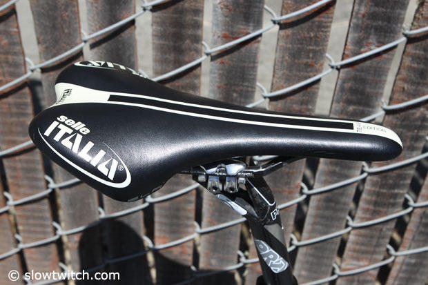 A Selle Italia Team Edition saddle on a Shimano Pro post.
