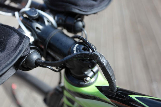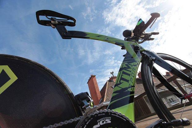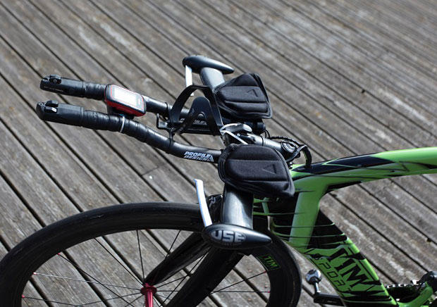 Timmerman opted for USE Tula bars with Profile Design T2 extension and F19 pads. The Di2 battery is in the left extension through Olivier Bierrot and his company BB Preparation.