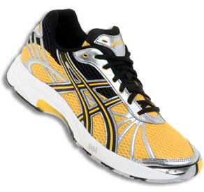 This (pictured at the top of this article) is an older DS trainer midsole with a specific triathlon upper named after the famous Australian race. Fewer seams, different and softer suede-like material in the heel counter, a choice of elastic or regular laces and a crazy printed upper for 2009. For the rest it is just like a DS Trainer in terms of stability and cushioning. You have to buy them online in Australia or in Europe since Asics USA chose not to import them, so, if you’re looking for something outrageous and fun, here you go.