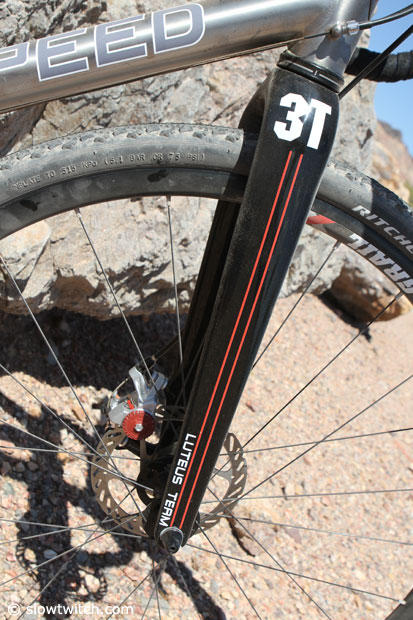 The 3T Luteus fork was on this specific bike, but a thruaxle front fork will also be made available.