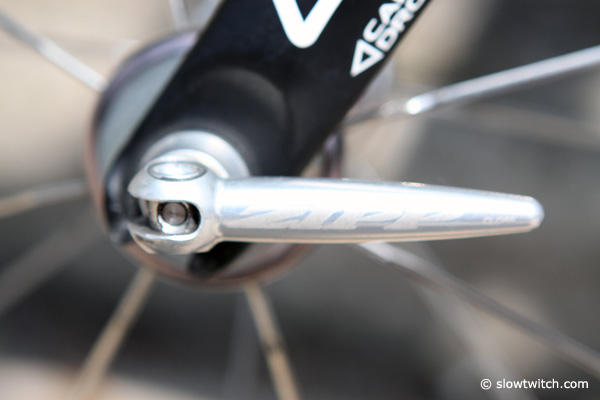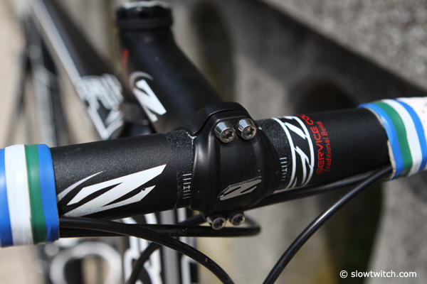 A 120mm Zipp Service Course stem is mated to 46cm Zipp Service Course bars.