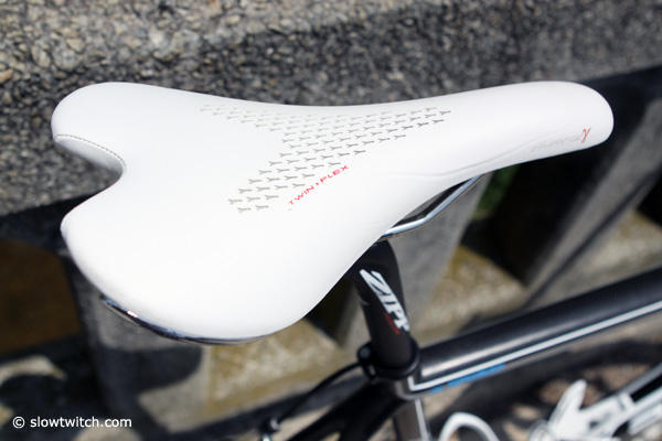 A Fizik Aliante saddle on a Zipp Service Course post.