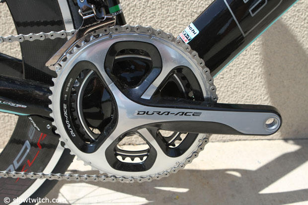 The bike at Interbike was set up with Shimano Dura-Ace Di2.