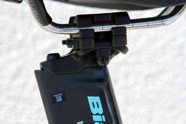 The seat cluster is clean and the Di2 battery is hidden inside the seatpost.