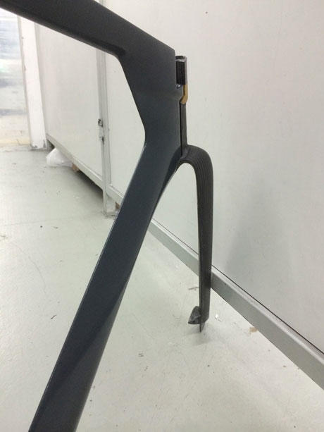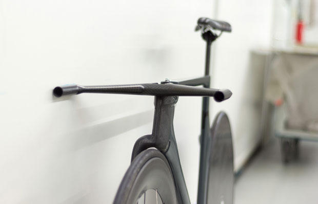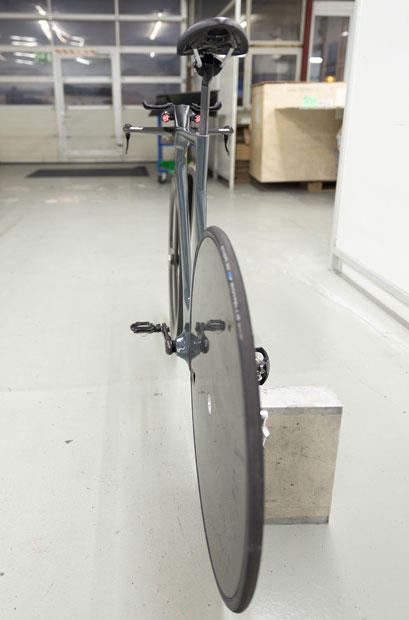 The Rafael Ueberbike sits quietly in this spot as it is getting finished. In case you are looking for the brake calipers, braking is done hydraulically in the hubs.