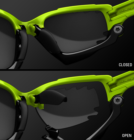The test pair that I received was fitted with a vented set of photochromic lenses with Transitions® technology. The photochromic lenses are light sensitive, and adjust relatively quickly to changes in ambient light. XTerra racers (or those who race on heavily forested courses as you often find in New England) will really appreciate these lenses for the responsiveness to changing light. In my own riding, it was just nice to have lenses that worked equally well in overcast conditions as when the sun came out. They are relatively bright lenses, with an average of 50% light transmission, but even on very sunny days, I never found myself wishing I had darker lenses in.