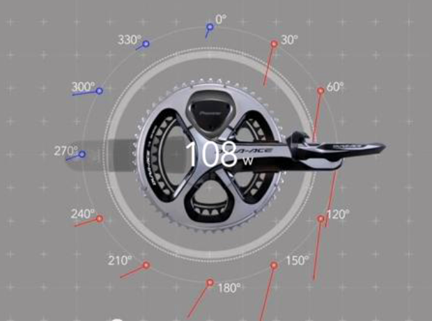 The other unique feature of the Pioneer power meter is that it also provides what they’re calling ‘Force Vector Display’. At each of the twelve points, it tells you your power, and also the direction:
