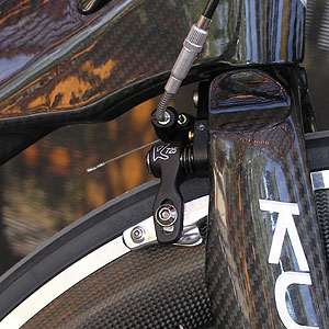 Usually, I start a build by installing the bottom bracket and the crankset. My advice: Install the brake calipers next, adjust the brake pads, install the fork and the handlebars, and the brake levers, and run the brake housing and cables before you do anything else. I say this because this bike's rear brake caliper mounts underneath the chain stays, and if you mount the crank before you run the brake cables you may find it hard to get around the chain rings if you've installed the crank. Just be patient and install the crank later, just before you're ready to mount the derailleurs and run the shift cables.