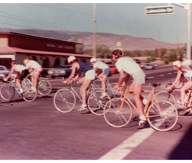Which brings me to hauling one’s own water. I competed in the Hawaiian Ironman 4 days after my 24th birthday, in February of 1981. (Above I’m entering T2 in that 1981 race.) I came home with a fire in my belly. I had an old car, I shared an apartment with roommates, with nary a drop in a savings account. I earned $9,707 total that year, working full time. There was no internet, no online registration. No one had ever heard the term “triathlon” or “Ironman” in my town. No one who did my race had ever done a triathlon before. I had no RD experience and no organization. There was no such thing as a bike rack. “Transition Area” was not a term. Still, somehow – don’t ask me how, because I don’t remember – I put on my first triathlon in August of 1981. (I’m racing in that triathlon below.)