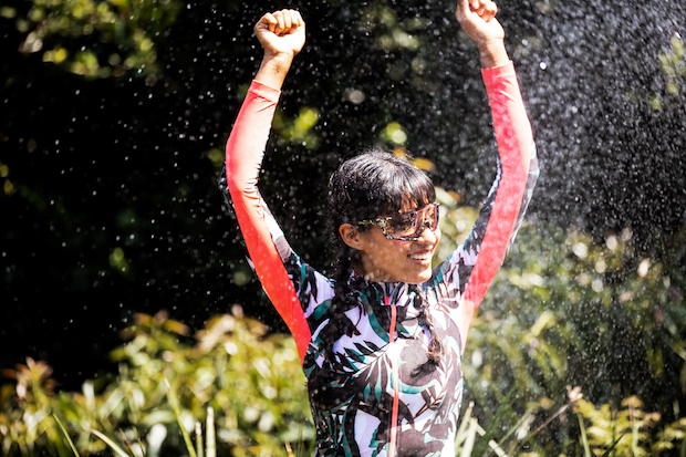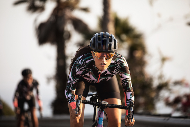 The Palmera Print is a fantastic embodiment of Machines’ inclusive credo: it is genderless and unlimited by season and sport: the colorway brings together the best of spring, summer, and fall, and can be worn year-round. I also contend it’s a great crossover print that can be all things to all people: it’s camouflage for a coffee ride, floral for gravel, muted for MTB. It’s both serious and light-hearted enough for your favorite weekly peloton, on whatever medium it takes place.